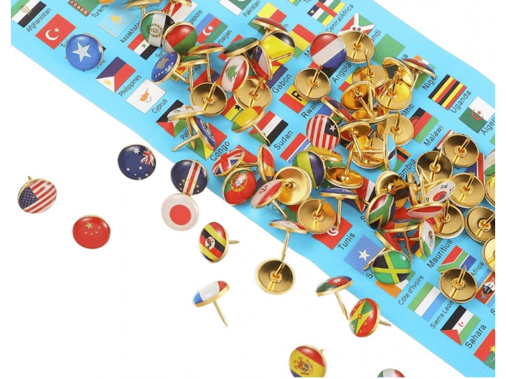 Tieto mapové špendlíky s vlajkami štátov môžete použiť napríklad na fotostenu, na drevené a korkové mapy, na nástenku, korkový glóbus alebo penovú tabuľu. Sú vhodné do škôl, kancelárií a domácností.