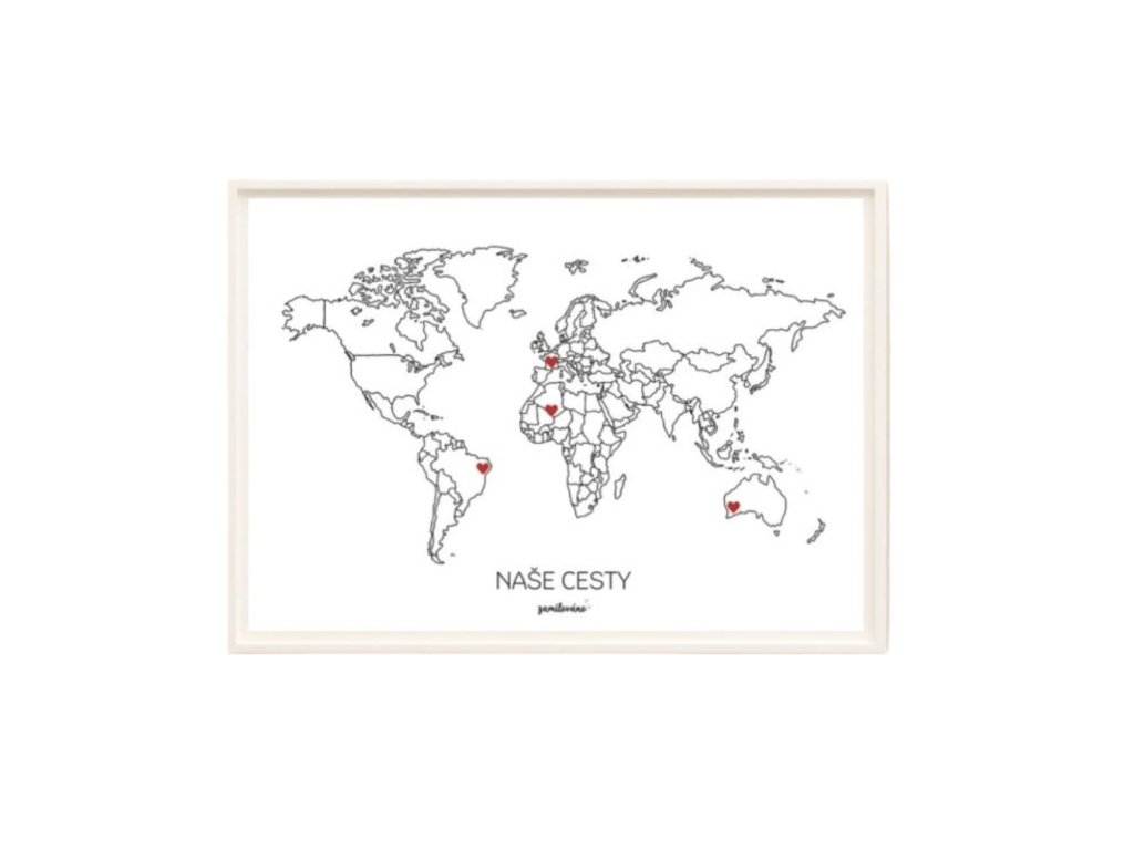 Spomienková mapa Naše cesty – Svet, A3 + rám