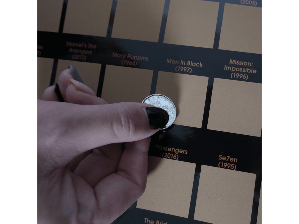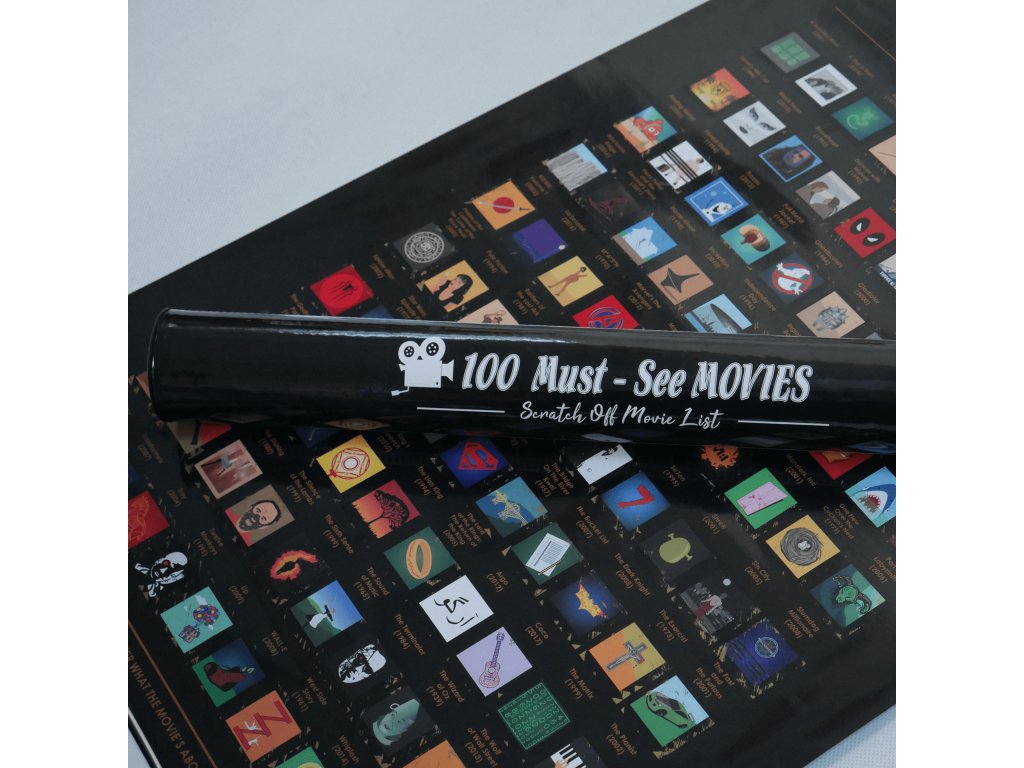 Neviete, pri akom ďalšom filme stráviť večer? Tento stieraci plagát vás nasmeruje a rozšíri vám obzory. Zaveste ho na stenu a sledujte filmy jeden za druhým, objavte nové filmy alebo si vychutnajte staré dobré klasiky. Najlepšia výzva s rodinou a priateľmi.