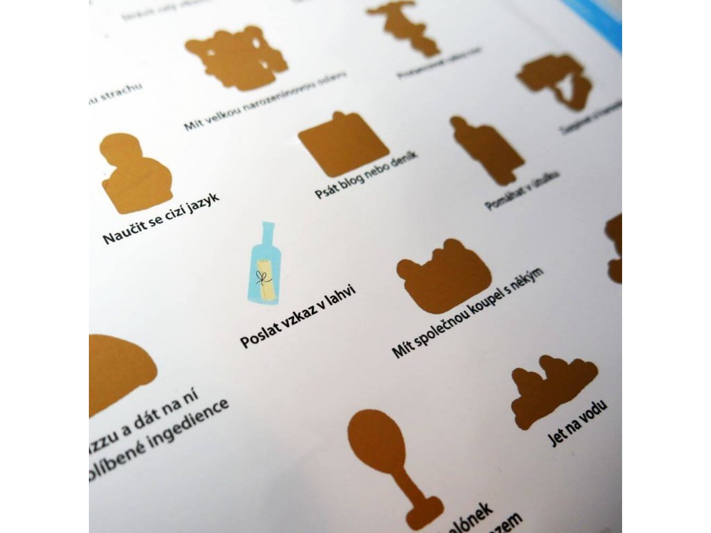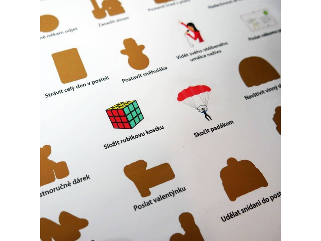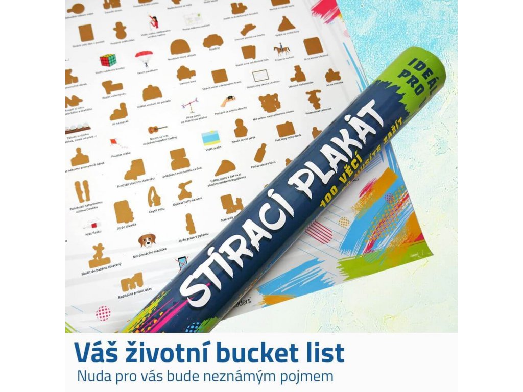 Od skoku padákom, cez deň bez mobilu, let lietadlom, návštevu kina bez sprievodu, naučenie sa hrať na nový hudobný nástroj až po vyskúšanie bláznivej atrakcie. To všetko a ešte viac musíte zažiť s týmto stieracím plagátom zážitkov.