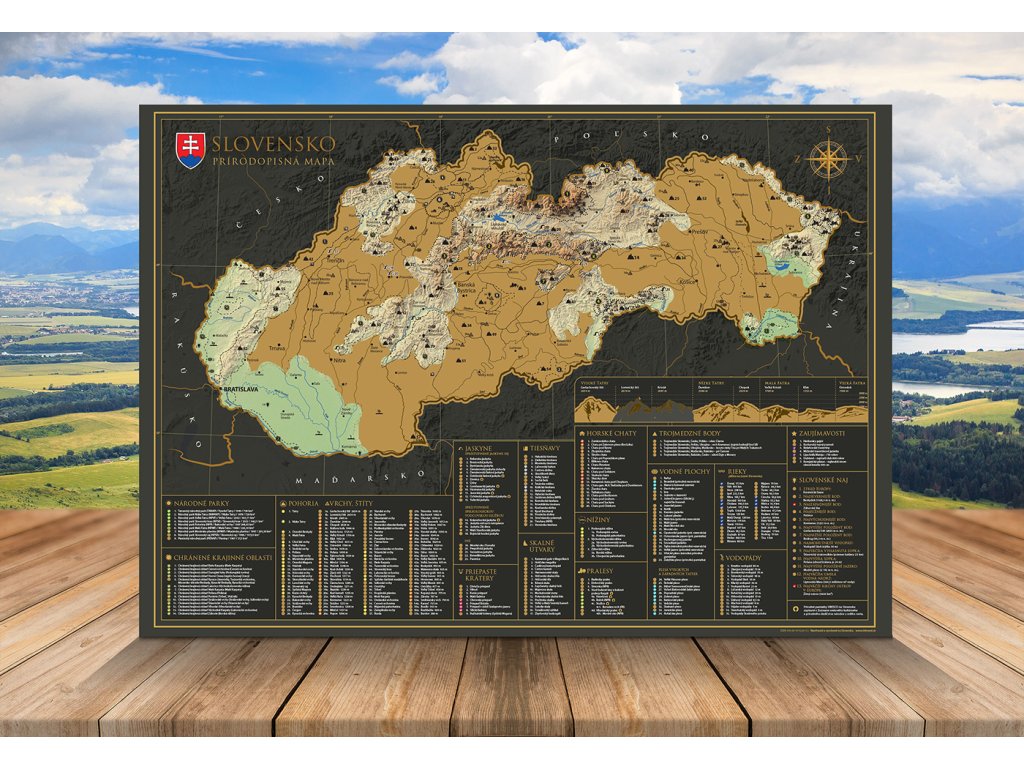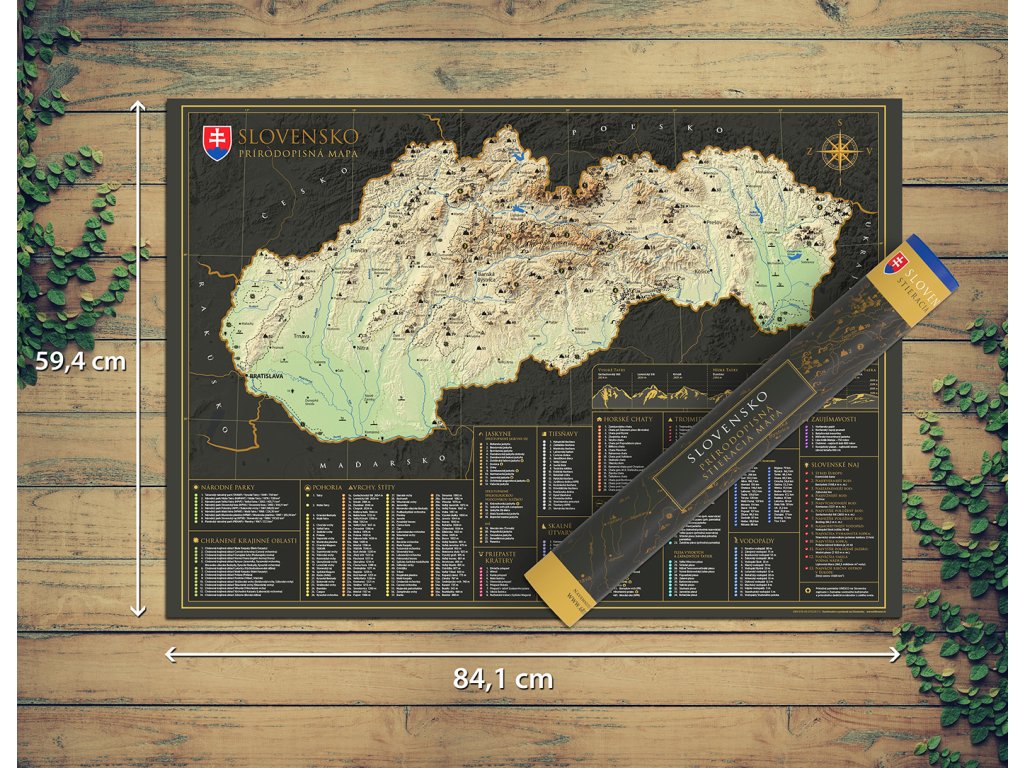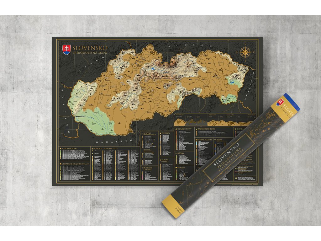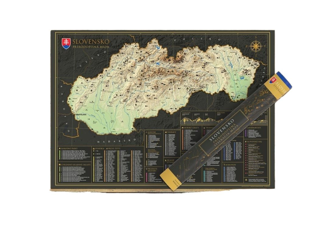 Vydajte sa na interaktívnu cestu po Slovenskej republike s našou stieracou mapou! Tento jedinečný produkt v sebe spája krásny dizajn a praktickú pomôcku pre každého cestovateľa. Pod zlatou stieracou vrstvou sa skrýva podrobná mapa Slovenskej republiky, ktorá odhaľuje pestré regióny, okresy a viac ako 300 atraktívnych miest, ako sú hrady, zámky, prírodné krásy alebo kultúrne pamiatky. Uchovajte si svoje spomienky z ciest originálnym a kreatívnym spôsobom.