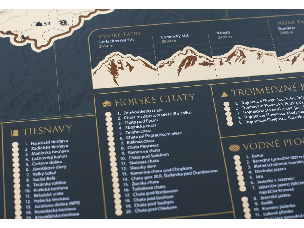 Naša mapa je nielen o cestovaní, ale aj o radosti z objavovania a zaznamenávania zážitkov. Je to skvelý spôsob, ako motivovať seba alebo svojich blízkych k objavovaniu krás Slovenskej republiky. Navyše jej kvalitné spracovanie a estetický dizajn z nej robia nielen praktickú pomôcku, ale aj krásnu dekoráciu na stenu.